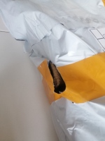 包裹破了,幸好里面的盒子够大没掉出来,如果洞口再大点就会掉出来了呢😅收到包裹时吓了我一跳